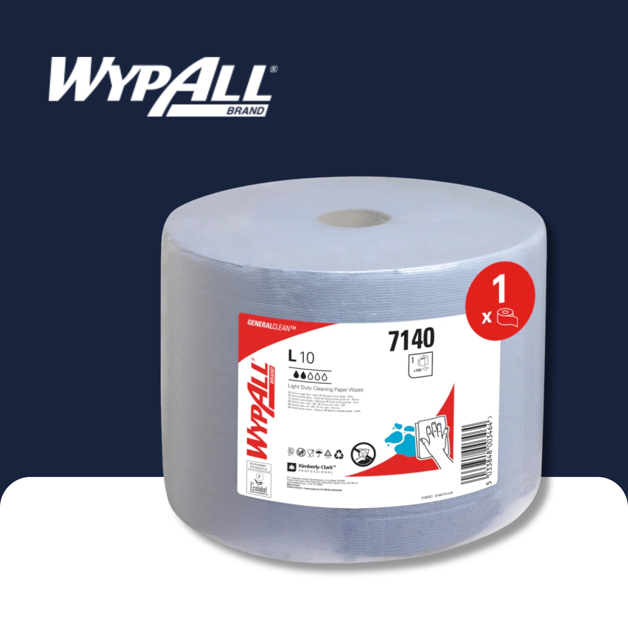 Fornecedor:Kimberly-Clark GmbHWypall® L20 Wiping para trabalho de manutenção - papel grande - extra largo / azul - 1 rolo x 500 folhas | Papelão (1 rolo)