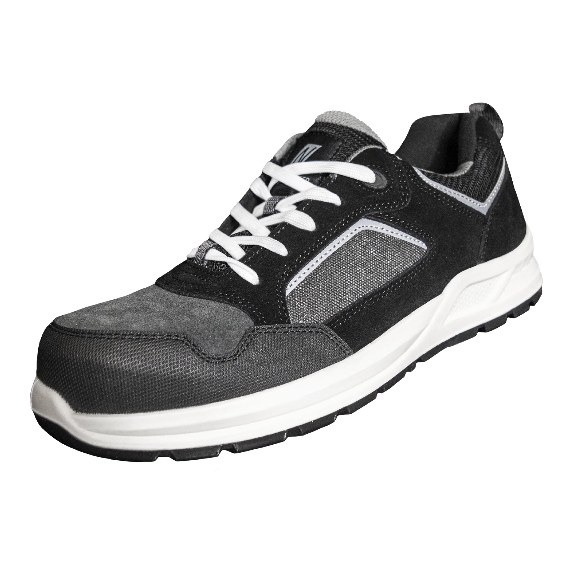 NITRAS CLASSIC STEP, sapatos baixos de segurança, S1 P, camurça durável, sola durável em PU / PU, cinza / preto (código de cor: 1210), biqueira em fibra de vidro, entressola resistente a perfurações em tecido, sem metal, palmilha COMFORT STEP de alta qualidade, formato ergonômico, design esportivo, melhor resistência ao deslizamento possível (SRC), elementos refletivos, largura 11,