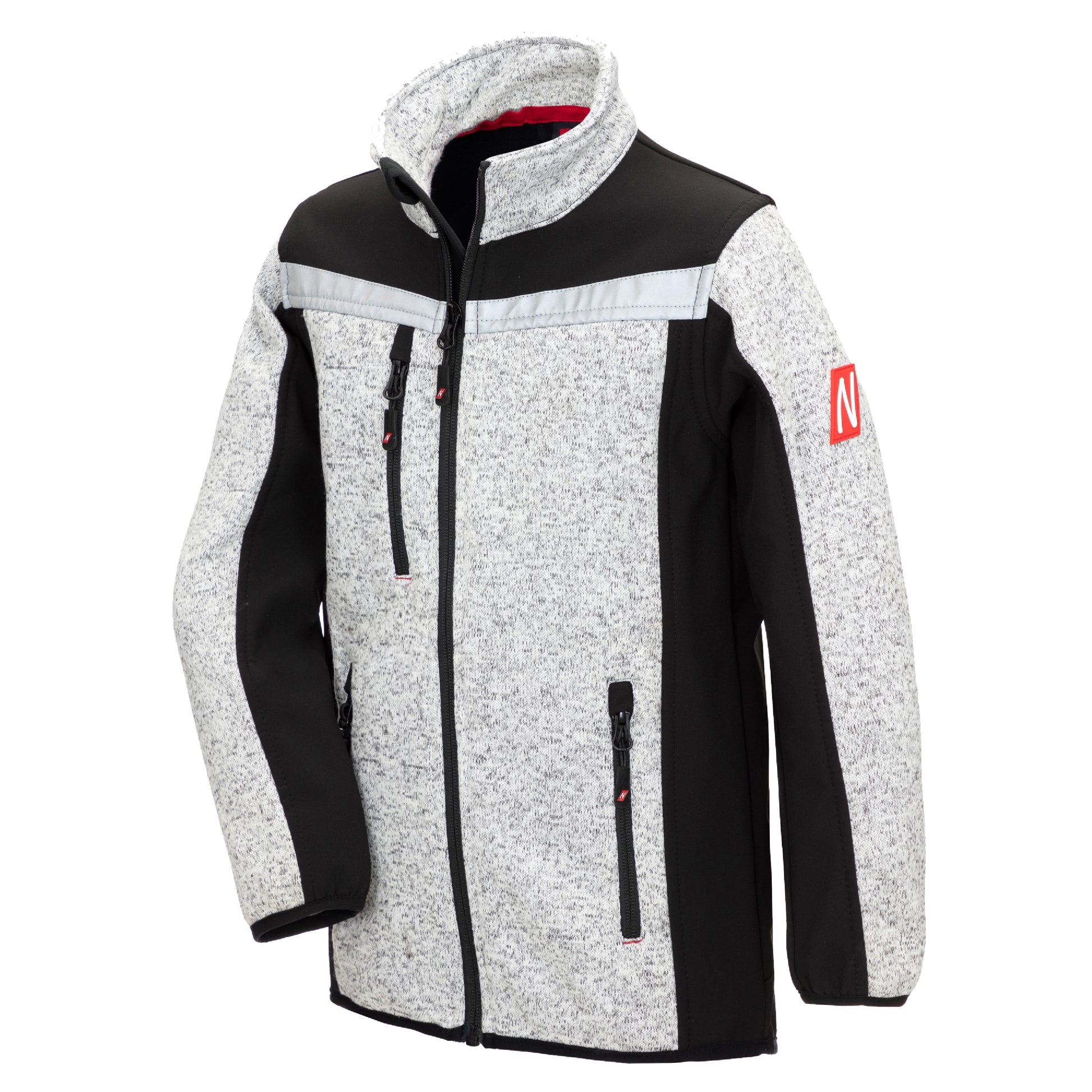 Die NITRAS MOTION TEX KIDS Strick-Softshelljacke in hellgrau / schwarz bietet jungen Abenteurern optimalen Tragekomfort und Schutz. Hergestellt aus atmungsaktivem Strickmaterial mit einem Gewicht von 320 g/qm, sorgt sie dank Stretchanteil und verlängertem Rücken für uneingeschränkte Bewegungsfreiheit. Der nicht kratzende Stehkragen, der durchgehende YKK-Reißverschluss mit Kinnschutz und der innere Windstopper bieten zusätzlichen Schutz gegen Wind und Wetter. Robuste Softshell-Verstärkungen an der Innenseite von Rumpf und Ärmeln erhöhen die Widerstandsfähigkeit bei abenteuerreichen Aktivitäten. Reflexelemente verbessern die Sichtbarkeit und somit die Sicherheit Ihrer Kinder.