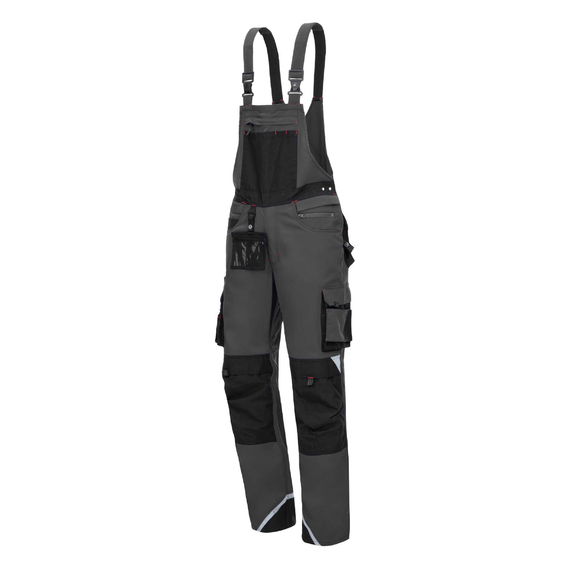 O macacão NITRAS MOTION TEX PRO FX em cinza/preto (código de cor: 1210) impressiona pelo seu material inovador e respirável com peso de 280 g/m² e conforto de uso particularmente elevado graças ao estiramento bidirecional e à cintura elástica. Reforços robustos na virilha, bem como CORDURA® nas pernas, joelhos e bolsos traseiros, no bolso externo do babador e nos punhos das pernas garantem uma longa vida útil. Os macacões estão equipados com uma variedade de bolsos práticos, incluindo bolsos nas coxas com abas, um bolso para régua, um bolso interno no babador com zíper YKK e bolsos nos joelhos para acolchoamento. O Material Refletivo 3M Scotchlite™ aumenta a visibilidade e, portanto, a segurança no local de trabalho. Algemas elásticas, fechos de clipe resistentes, um laço de martelo ajustável, argola em D e porta-cartões de identificação completam os recursos. A qualidade premium é certificada de acordo com OEKO-TEX STANDARD 100® e oferece um ajuste moderno e confortável. Bolsas de ferramentas 770P e proteção de joelhos 76K (EN 14404) estão disponíveis opcionalmente.